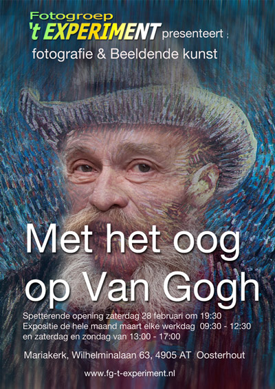 Zaterdag 28 februari om 19:30 uur wordt de expositie “Met het oog op Van Gogh” op een bijzondere manier geopend. De locatie is de Mariakerk, Wilhelminalaan 63 te Oosterhout. De expositie is de hele maand maart te bezoeken, elke werkdag van 09:30 – 12:30 uur en op zaterdag en zondag van 13:00 – 17:00 uur.